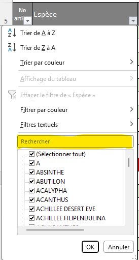 Pour rechercher facilement une espèce ou variété, vous pouvez :